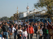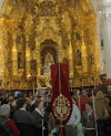 Cuando eran poco más de las 16:30 la comitiva emprendió el camino al Santuario, precedido por el Estandarte de la Corporación , y presidiendolo el Simpecado de la Hermandad , y el acompañamiento musical del joven tamborilero local Nicolás Ramírez González, para hacer la entrada en la Ermita minutos antes de las 5 de la tarde, donde se celebró la Eucaristía predicada por Juan Carlos Pérez Godoy, hermano de la Corporación , para finalizar el acto con el canto de la Salve Rocíera a cargo del Coro de la Hdad. del Rosario de Burguillos, y unos emocionados vivas a la Blanca Paloma y a la Stma. Virgen del Rosario.
